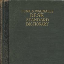 "Funk & Wagnalls Desk Standard Dictionary 1928" Black cloth and leather - indented alphabet - gold lettering. Printed in gold on front cove inside "Mrs A.E. Sprague, New Orleans, Jan 16, 1929"