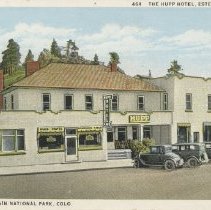 color, white border. Caption at top reads, "The Hupp Hotel, Estes Park, Colorado........at bottom:, "Rocky Mountain National Park" Sanborn Souvenir Company: #464