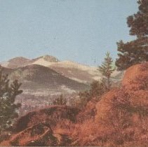 Kodachrome by Dave Stirling "Longs Peak, Alt, 14255ft Sentinel of the Rocky Mountain National Park American colortype: Chicago, USA Sanborn Souvenir Company: #2239