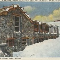 color linen type white border. Caption in top border reads, "Trail Ridge Museum at Fall River Pass, altitude 12,797 feet on the Trail Ridge Road bottom: "Rocky Mountain National Park, Colorado" Sanborn Souvenir Company: #425