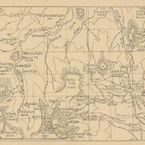 Off white postcard with grid map. "Road and Trail Map of vicinity of Longs Peak Colorado; Copyright 1914 by E.F. Gillette...First Series" Back: "Post Card; for message; for address; stamp"