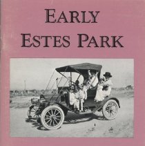 Brochure, green cover with white text and design reading 'Estes Park / Colorado' Interio fold has map of Estes Park and area. Bifold, staple bound on one edge. Page 1-- includes description of Estes Park and location, how to get to Estes (listing train travel then stage from Lyons), lists hotels and boarding houses (Estes Park Hotel, Elkhorn Lodge, the Highlands, Sprague's, and Long's Peak House), lists camp and cottage life. Page 2-- ...